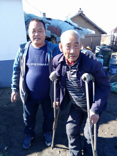 杨清元是白云岱林场精准扶贫帮扶责任人林场工会主席邵会库同志的帮扶对象,是白云乡新民村民生屯人。杨清元双侧股骨头坏死,拄拐,因病、因灾致贫,划属低保贫困户家庭。多年丧失劳动能力,夫妻二人无住房,住在儿子一间厢房内,生活十分拮据。