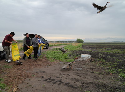 6月5日,嫩江县金鑫经贸公司工作人员联系到我县高峰野生动物救助站,准备把救助后的四只白额雁交到林业野生动物保护救助部门。闻讯后,bte365体育在线、高峰野生动物救护站、中央站保护区工作人员随即开展了救助、放飞工作。